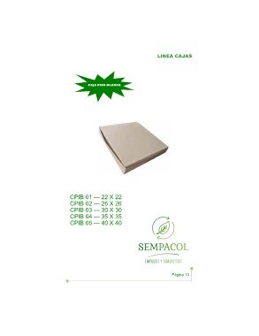 LINEA CAJAS CAJA PIZA BLANCA CPIBÊ01Ê—Ê22ÊXÊ22 CPIBÊ02Ê—Ê26ÊXÊ26 CPIBÊ03Ê—Ê30ÊXÊ30 CPIBÊ04Ê—Ê35ÊXÊ35 CPIBÊ05Ê—Ê40ÊXÊ40 PáginaÊ10