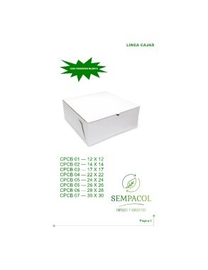 LINEA CAJAS CAJA CUADRADA BLANCA CPCBÊ01Ê—Ê12ÊXÊ12 CPCBÊ02Ê—Ê14ÊXÊ14 CPCBÊ03Ê—Ê17ÊXÊ17 CPCBÊ04Ê—Ê22ÊXÊ22 CPCBÊ05Ê—Ê24ÊXÊ24 CPCBÊ05Ê—Ê26ÊXÊ26 CPCBÊ06Ê—Ê28ÊXÊ28 CPCBÊ07Ê—Ê30ÊXÊ30 PáginaÊ6